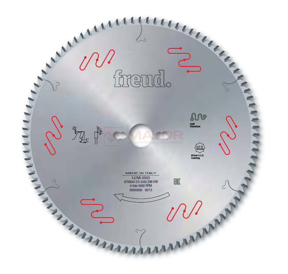ATB 38o tooth, with variable cutting angle according to the diameter.